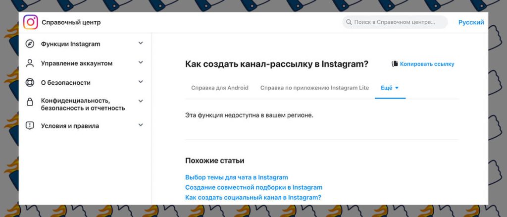 Но несмотря на то, что VPN не решает проблемы, с его помощью можно определить, где функция доступна. Вот с VPN (с геолокацией США) я открыл страницу справки и информация про каналы есть.