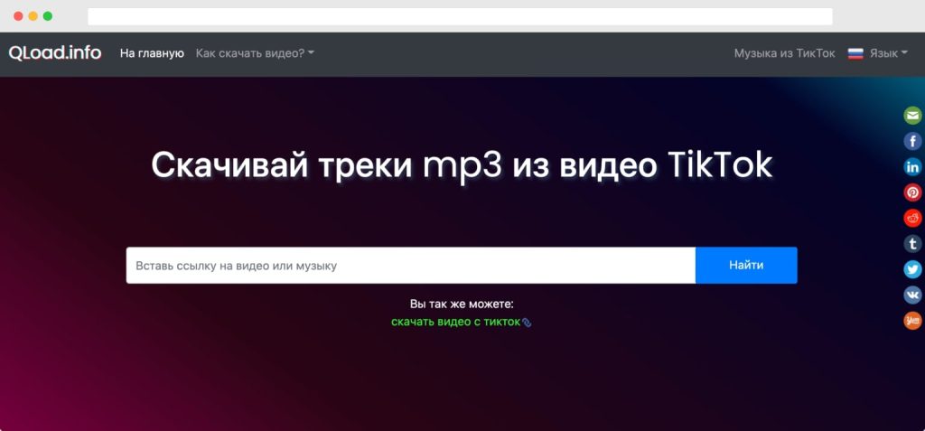 - Как только сайт нашел нужную музыку, достаточно просто нажать на «Скачать трек». Qload умеет работать с любыми ссылками на аудио, а также показывает автора и название музыкальной композиции.