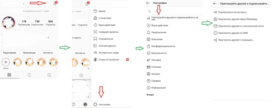 После регистрации профиля зайдите в раздел Настройки и пригласите друзей по схеме ниже.