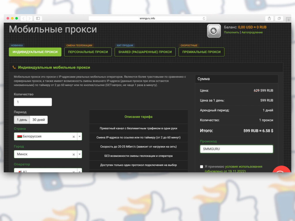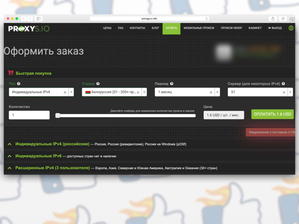 Кстати, по промокоду SMMGURU у вас будет 10% скидка на покупку любых прокси.