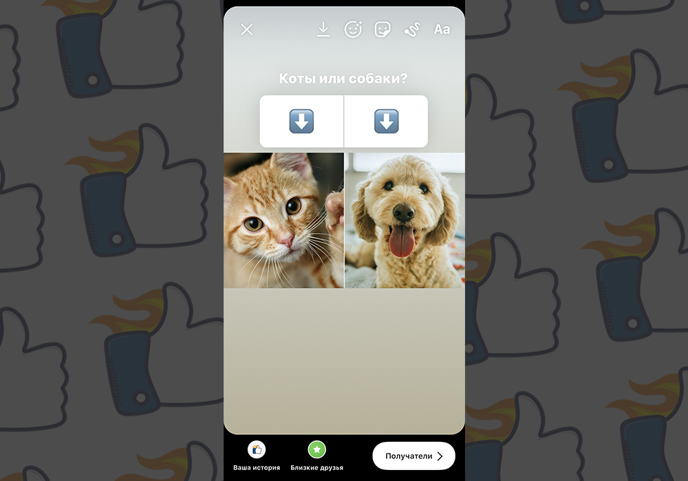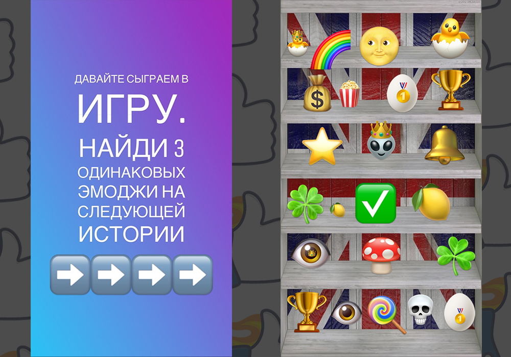 Результат: люди останавливают вашу историю или возвращаются к ней, чтобы отыскать нужные смайлики. Это человеческая психология — мы любим загадки и задачки. Когда я сделал этот конкурс, то я получил в разы больше ответов на историю, чем обычно.