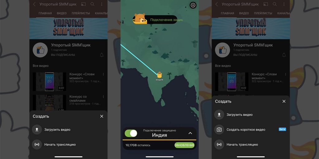 Итак, все, что нам нужно: мобильное приложение YouTube и VPN (я использую VPN TunnelBear). Если вы попробуете добавить видео с мобильного приложения, то вам предложит 2 варианта: добавить обычное видео или начать трансляцию. А есть включить VPN (Индия или США) и еще раз попробовать загрузить видео, то вам предложит выложить короткое видео. Вуа-ля, теперь вы можете добавлять короткие видео на YouTube без регистрации и смс ? И не надо никаких хеш-тегов в названии или описании.