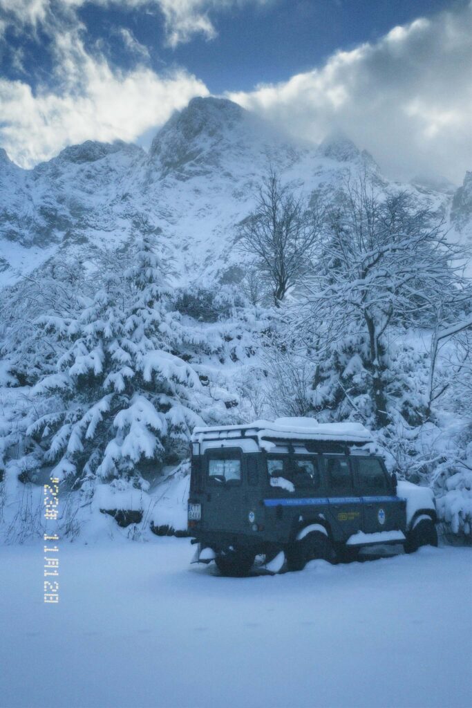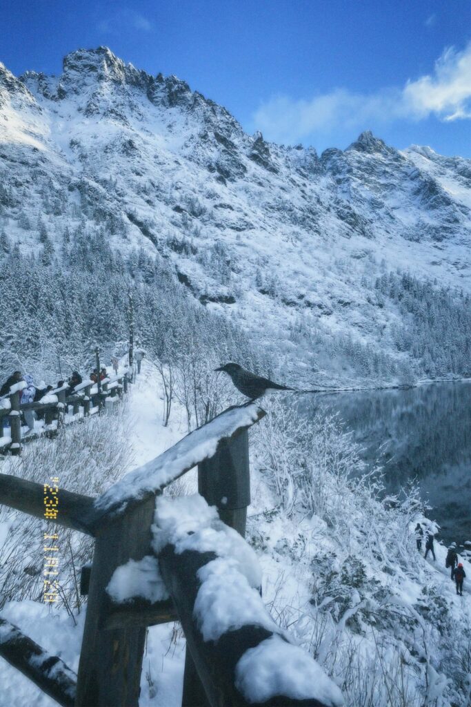 А еще после входа в парк у вас есть выбор, вы можете пойти не только на популярное «Морское око», но и на другие горные озера или водопады. И так, сам путь к знаменитому горному озеру мы выбрали пешком и не пожалели, несмотря на то, что к концу уже было тяжеловато. За день до нашей поездки был снегопад, но 90% дороги было очищено. Только в конце мы уже шли минут 10-15 по дороге, которую напрочь замело и идти было тяжеловато (спасибо купленным ботинкам Columbia, что было не скользко). Но вот виды были потрясающими (фотопруф ниже). Также по пути нам встретился туалет (обычные биотуалеты), несколько разных по размеру стоянок со столами, где можно остановиться перекусить. Будьте готовы к тому, что вашими гостями на таких стоянках будут птички, поэтому можете сразу купить что-нибудь для них в зоомагазине.